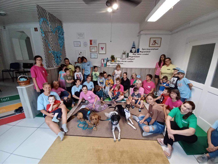 A gyerekek nagyon élvezik, a kutyusok örömöt adnak, de emellett fejlesztő gyakorlatokat is végeznek.